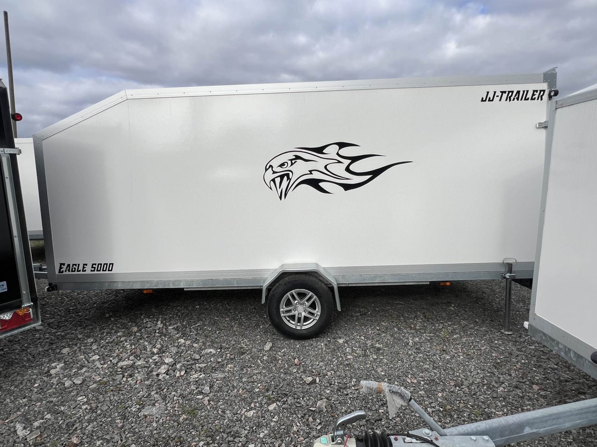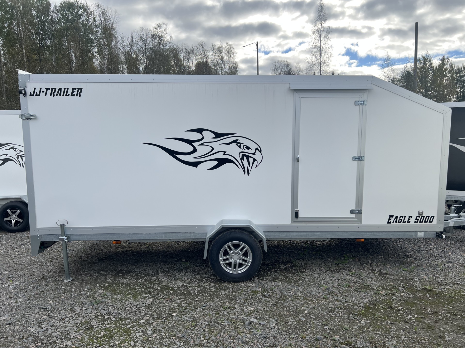 Jarrullinen JJ-Trailer Eagle 5000 PRO kaappivaunu on uretaani / lasikuitu elementistä valmistettu umpiperävaunu.