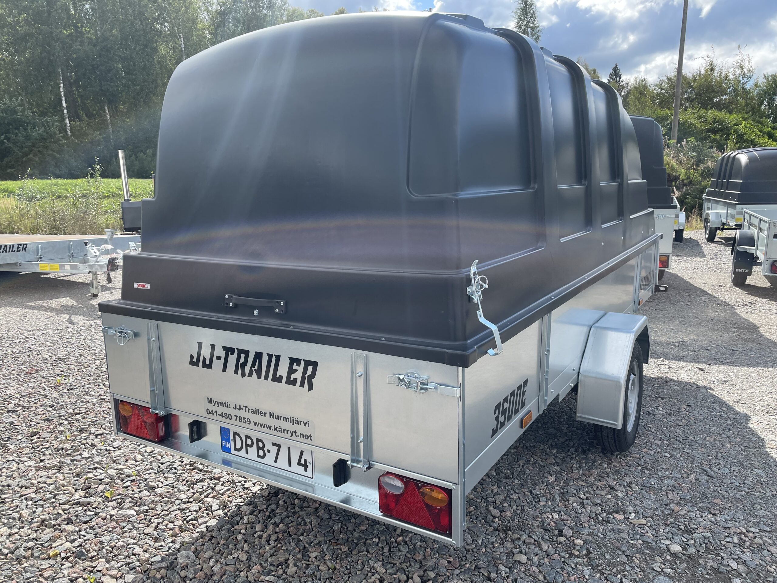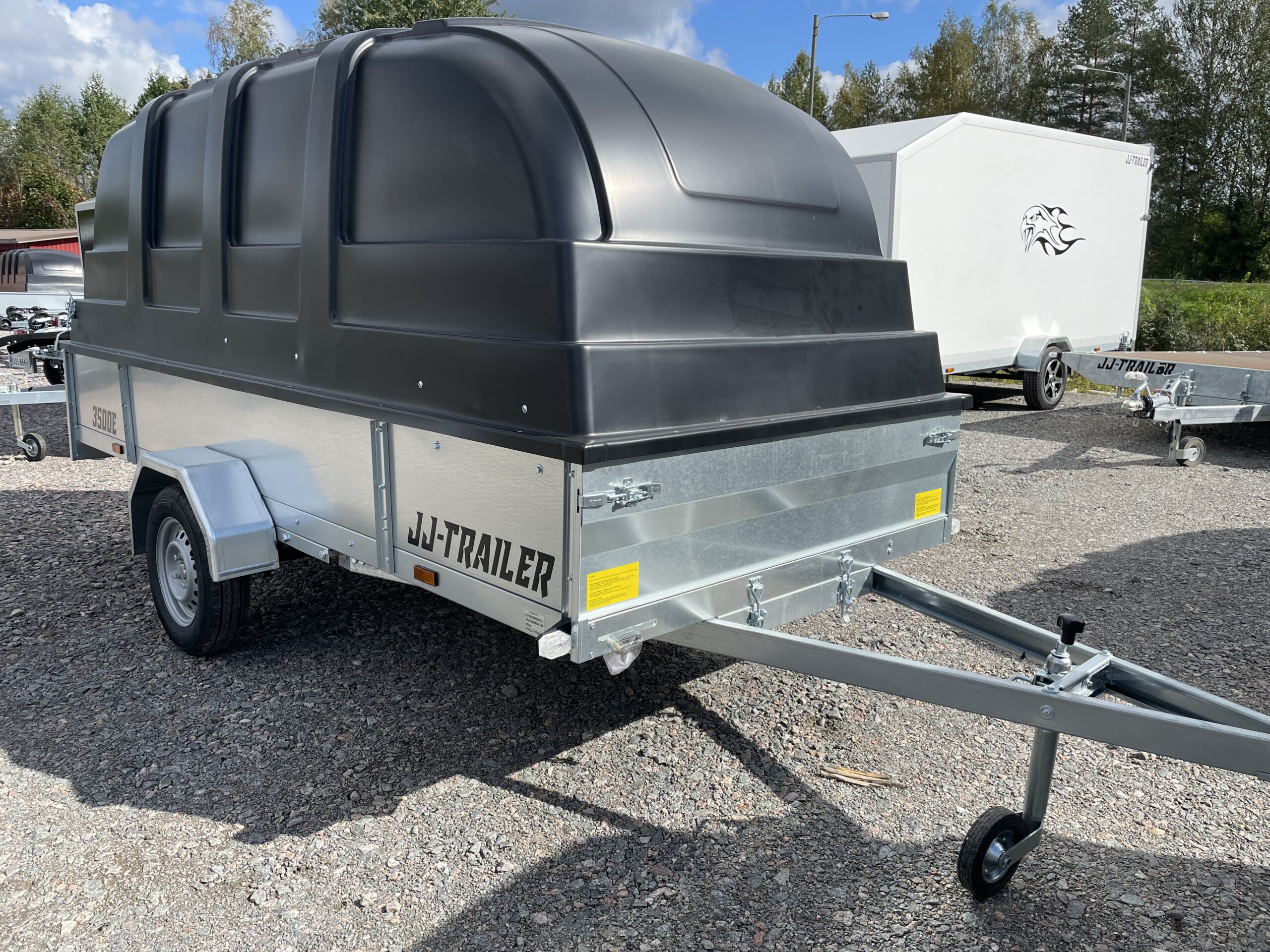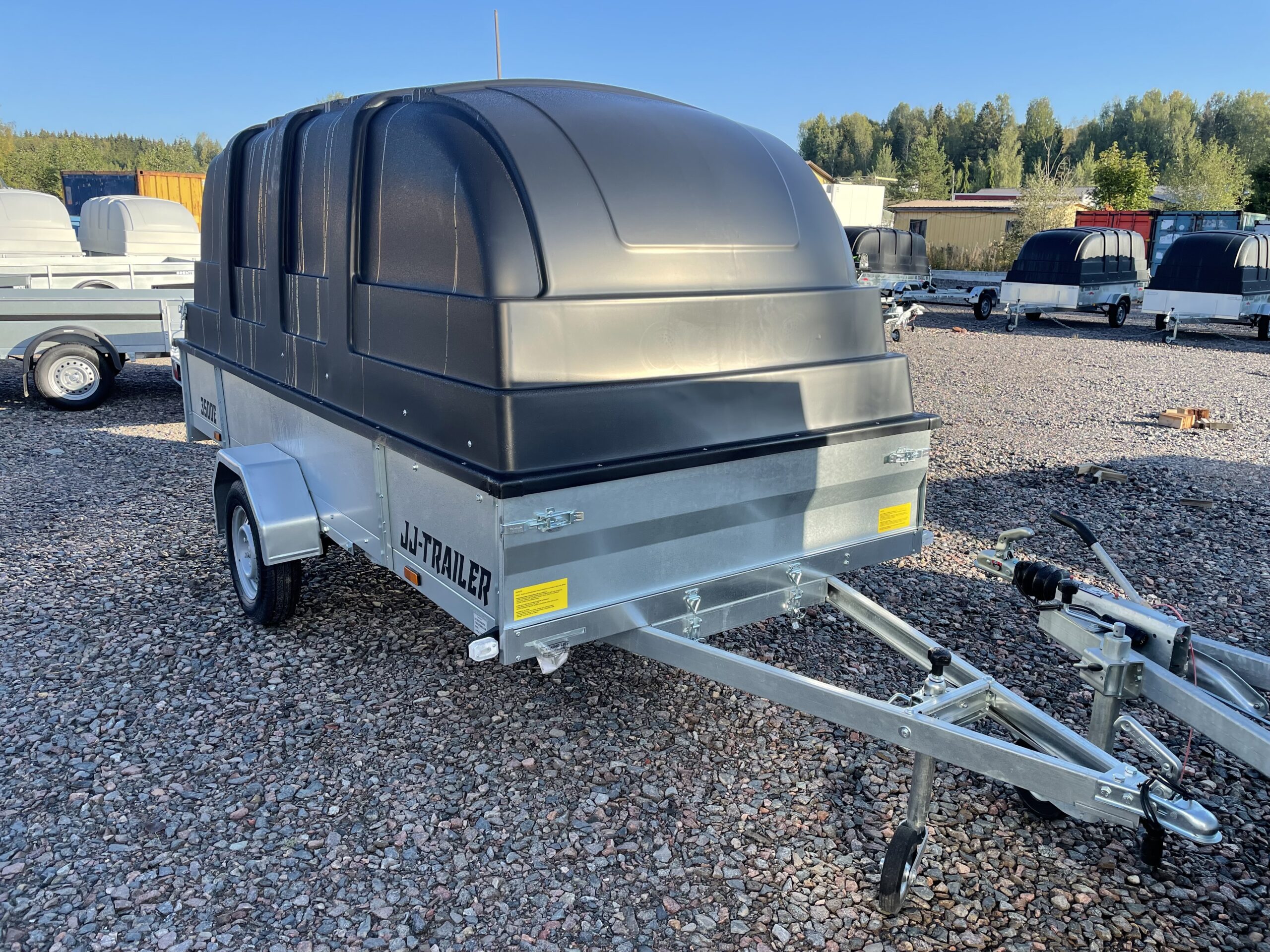 Kaikissa kuomukärryissä käytämme markkinoiden myydyintä JAXAL kuomua. Markkinoiden tilavin kuomu mikä valmistetaan HD-PE muovista tyhjiömuovaamalla ja näin saavutetaan kevyt (35-75kg mallista riippuen) sekä kestävä rakenne jonka käyttölämpötila on -40 +70 astetta. Kestää useimpia kemikaaleja. PITKÄN TAVARAN kuljetus onnistuu IRROTTAMATTA KUOMUA.