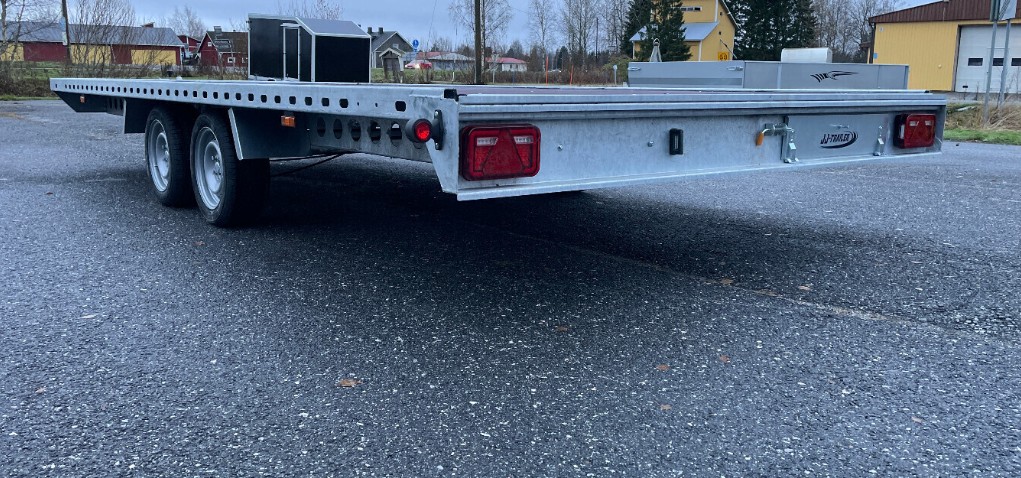Etu- ja sivupalkkien reijitys toimii kiinnityspisteinä. Lava täysin tasainen 18mm pontattu säänkestävä levy.